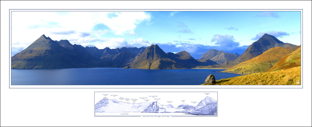 The Cuillin Hills from Elgol, Isle of Skye Date: 11/09/08 A panoramic view of the Cuillin from Elgol, Isle of Skye. Captured on 1st October 2003. Created using 12 individual photographs.