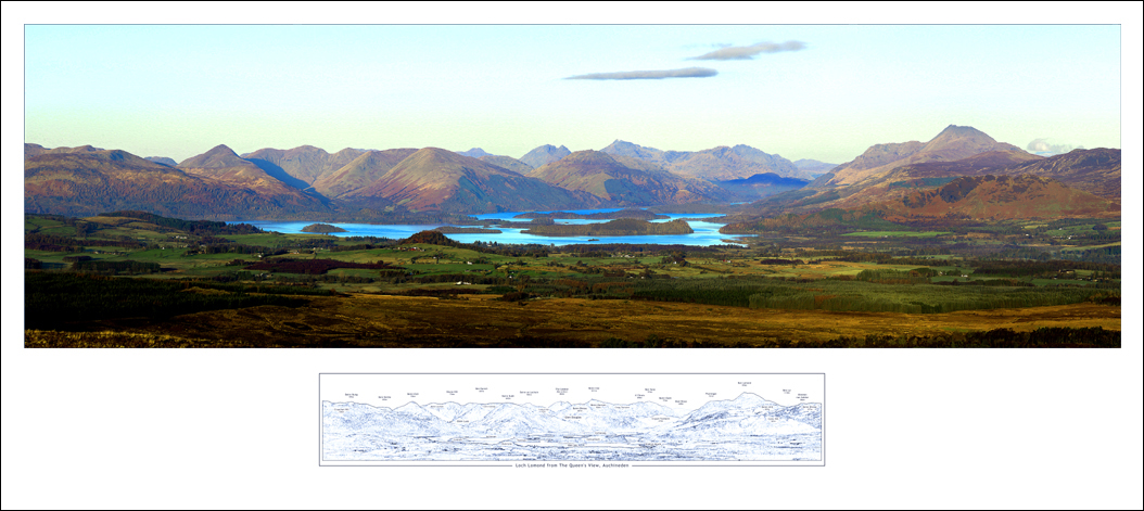 Loch Lomond from The Queen's View Date: 06/12/05 Loch Lomond, Ben Lomond and the Arrochar Alps from The Queen's View, Auchineden. Captured on 6th December 2005. Created using 10 individual photographs.