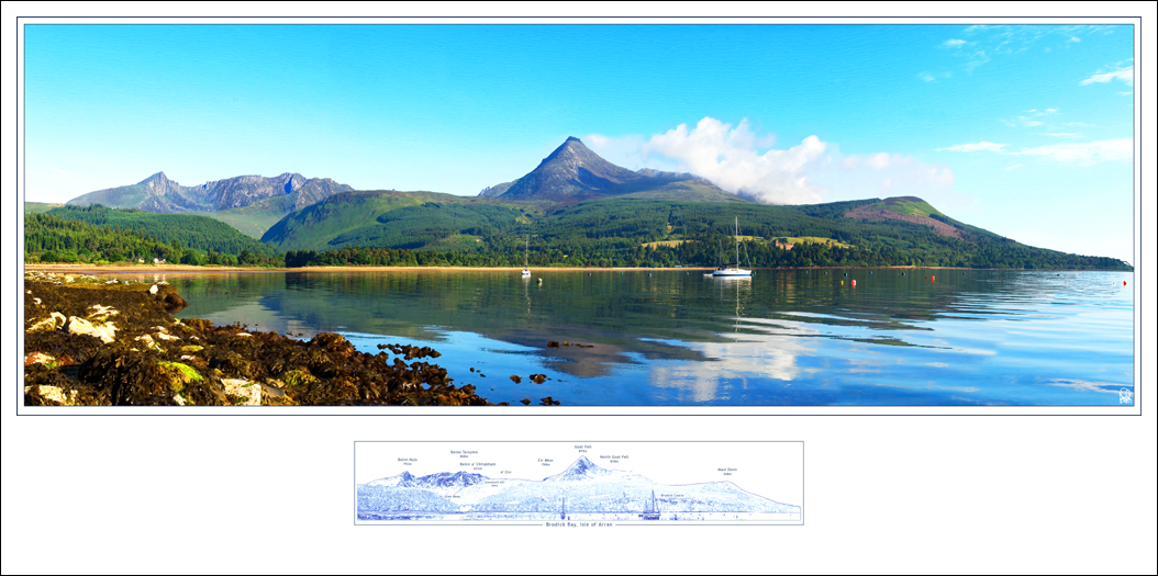 A view over Brodick Bay looking towards Goat Fell. Picture composed from 14 separate photographs captured in June 2010.